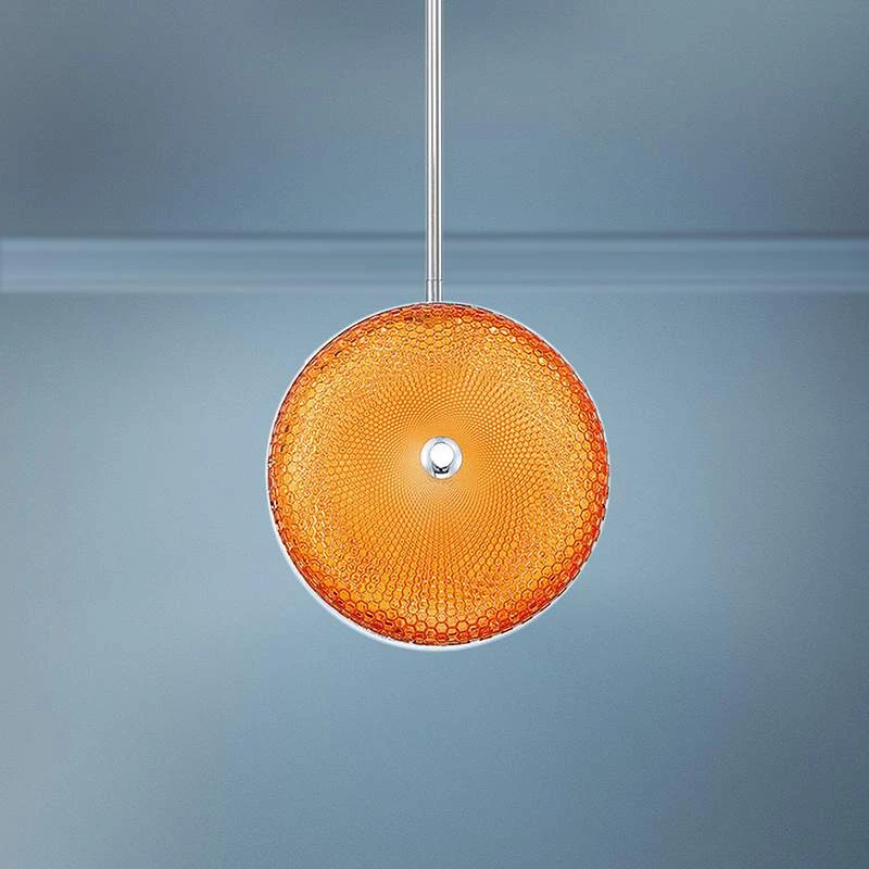 Caledonia 10″W Orange Honeycomb Glass LED Mini Pendant Light