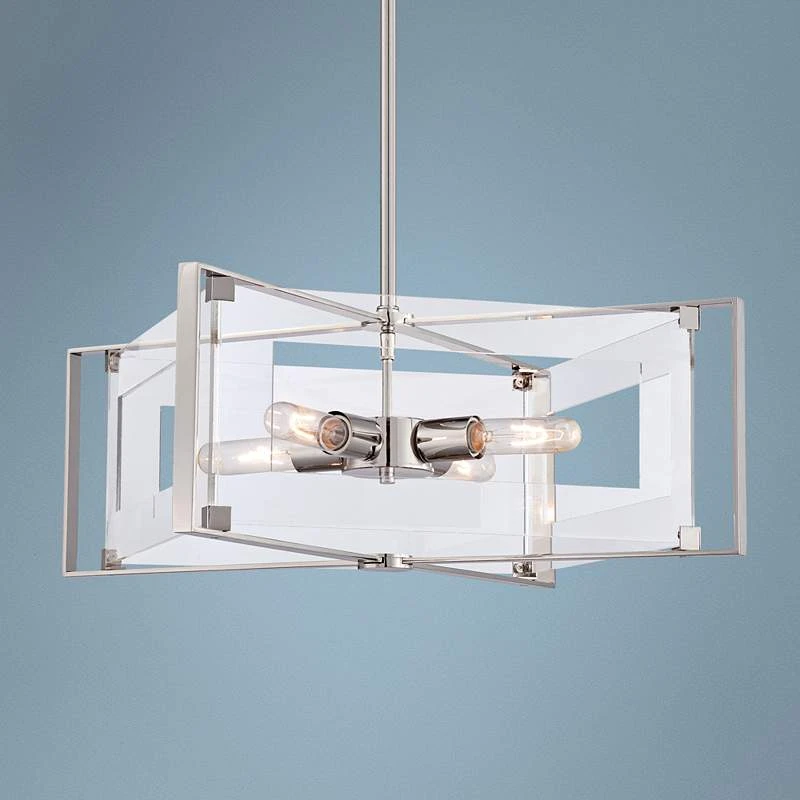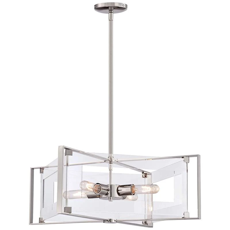 Crystal Clear 19 3/4″W Polished Nickel 4-Light Pendant