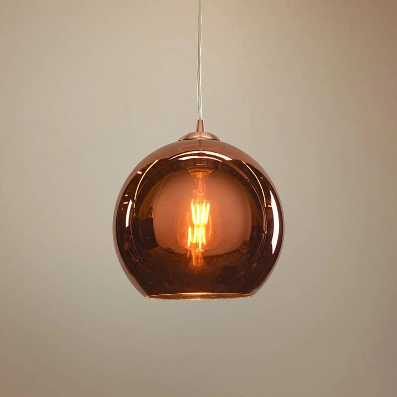 Glow 10″ Wide Modern Brushed Copper Glass Mini Pendant