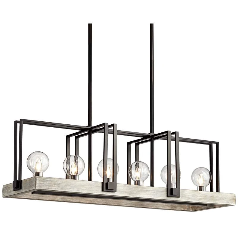 Laya 38 3/4″W Bronze W/ Wood Kitchen Island Light Chandelier