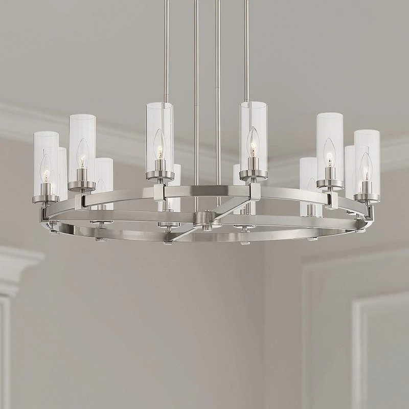 Stiffel Aron 36″ Nickel 12-Light Wagon Wheel Ring Chandelier